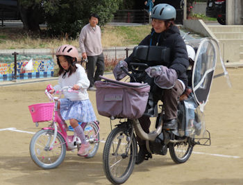 お母さんと一緒に練習